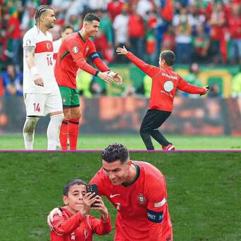 小男孩闯球场绕过保安得到C罗的合影和拥抱,